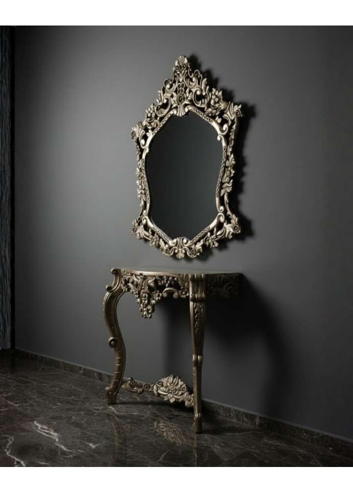 Evinizin girişine, salonunuza veya yatak odanıza anında saray ihtişamı katacak bu göz alıcı Barok/Neoklasik Konsol ve Ayna Seti ile tanışın. Yüzyıllık zanaatkarlığı modern lüksle birleştiren bu takım, dekorasyonunuzun odak noktası olmaya hazır.